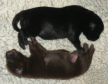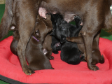 Hvalpene spiser og spiser og de tager vildt meget på. De har åbenbart besluttet sig til, at de skal blive store og tykke så hurtigt som muligt :-) Brownie har det godt, hun kan følge med at levere de mængder mælk, som hvalpene kræver.