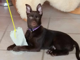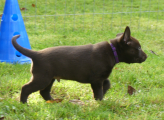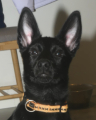 Hun har fået øgenavnet pivdyr herhjemme, da hun altid har pivet rigtig meget, især når hun synes at tingene går lidt for langsomt eller er for kedeligt. Jeg træner DcH lydighed med hende på C niveau, og træner med hende næsten hver dag.
