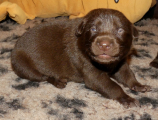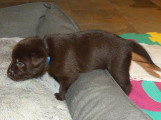 Brownie spiser som en havnearbejder, men hun ser stadig ok ud og hun kan tilsyneladende følge med med mælk endnu. Hun er rigtig glad for sine hvalpe og ligger rigtig meget ude ved dem. Ikke altid i kassen, for hvis hun bliver opdaget, så er der straks en eller flere hvalpe der finder frem til mælkekilderne.