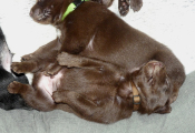 Hvalpene er helt sikre på, at de skal dø af sult og når de så (endelig) har fået morgenmad, så er der bare en masse energi, der skal brændes af :-)