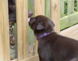 Passja har for første gang fået adgang til at kigge ned i hvalpekassen og det var godt nok spændende.