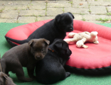 Det går så stærkt med de hvalpe nu - de vokser og de bliver mere adrætte for hver dag der går. De elsker at være ude, men vejret er ikke rigtig på vores side i øjeblikket. Strom og blæst er ikke deres kop te, så vi har været meget indenfor de sidste dage.