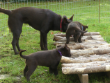 Hvalpene er begyndt at lege rigtig meget med hinanden nu, og de hygger sig rigtig meget sammen.
