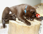 Hvalpene er på tur i haven sammen med Brownie, Passja og Charlotte. De spæner og spæner og løber i alle retninger (derfor ingen video af dette) og de finder spændende ting at rode i.