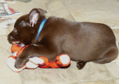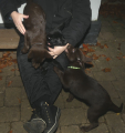 Han har gået til hundetræning siden starten af 2024 og han går under navnet chokoladeraketten, for han er umanerlig hurtig. For nylig er han rykket op på et hold med lidt ældre hunde og mere disciplin. Vores hundetræner er virkelig dygtig og forstår heldigvis hunderacers forskellighed. Vi får altid sjove opgaver med hjem.