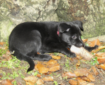 Han elsker at lege med os og endnu mere at lege med andre hunde.