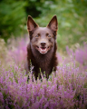 Hon bor ihop med min äldre kelpiehane som hon ofta och gärna bossar runt. Han tar det till en viss del, och när han säger stopp så backar hon direkt. De ligger gärna tätt tillsammans och sover eller tuggar på ben. I övrigt verkar hon föredra mänskligt sällskap framför hundkompisar - hon har inge problem med andra hundar och kommer bra överens med de flesta, men de verkar vara onödiga i hennes värld. Människor däremot älskar hon - och de älskar henne.
