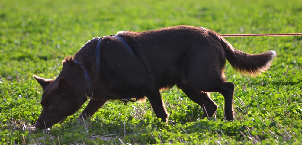Jeg elsker at arbejde og så snart halsbånd og snor kommer frem, danser jeg rundt på to ben. Jeg elsker når vi kører afsted, men da jeg var lille skreg jeg helt vildt indtil min mor kørte 2 min op til skoven for at gå tur. Så lærte jeg at der vist ikke var nogen grund til at skrige. Det var trods alt ikke slagteriet hun kørte mig til. Og nu er det en fest. Tit skal jeg ud at møde kelpievenner at træne sammen med, så det kan kun blive en fest. Lige nu er jeg i DcH's A-klasse, men jeg har også taget en del andre prøver i brugshunderegi og ind imellem kommer jeg ud til Camilla som træner hyrdning med mig.