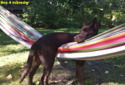 Hon är utbildad narkotikahund och hjälper till med att bekämpa narkotika på ett behandlingshem. Hon älskar att jobba och er riktigt duktig.