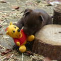Hvalpene leger rigtig meget i den nye udvidede hvalpegård og de er rigtig glade for gyngen, som de har fået hængt op. De elsker jo alt nyt, så hvis man kommer med noget til dem, så bliver det straks overfaldet og gennemgået grundigt (læs: bidt i og snuppet).
