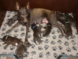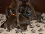 Cheetah er sådan en god mor, hun har klaret alt til perfektion. Dog måtte dyrlægen lige ind over at få den første (store) hvalp født, men derfra har hun klaret alt selv. Hun er så glad for sine hvalpe og de spiser bare hele tiden. Så de skal nok blive til noget :-)