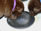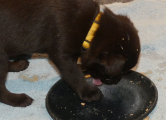 Hvalpene har lært at spise selv på rekordtid. De sviner ikke så meget som andre før dem, meen man kan godt fornemme, når der er blevet spist mad.
