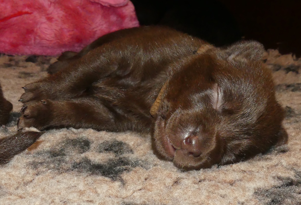 Nu begynder der rigtig at ske noget med hvalpene. Øjne og ører er ved at åbne sig, selvom de endnu ikke kan se eller høre. De begynder at "gå" på deres ben - ikke elegant måske, men de er godt på vej til at blive rigtig mobile.