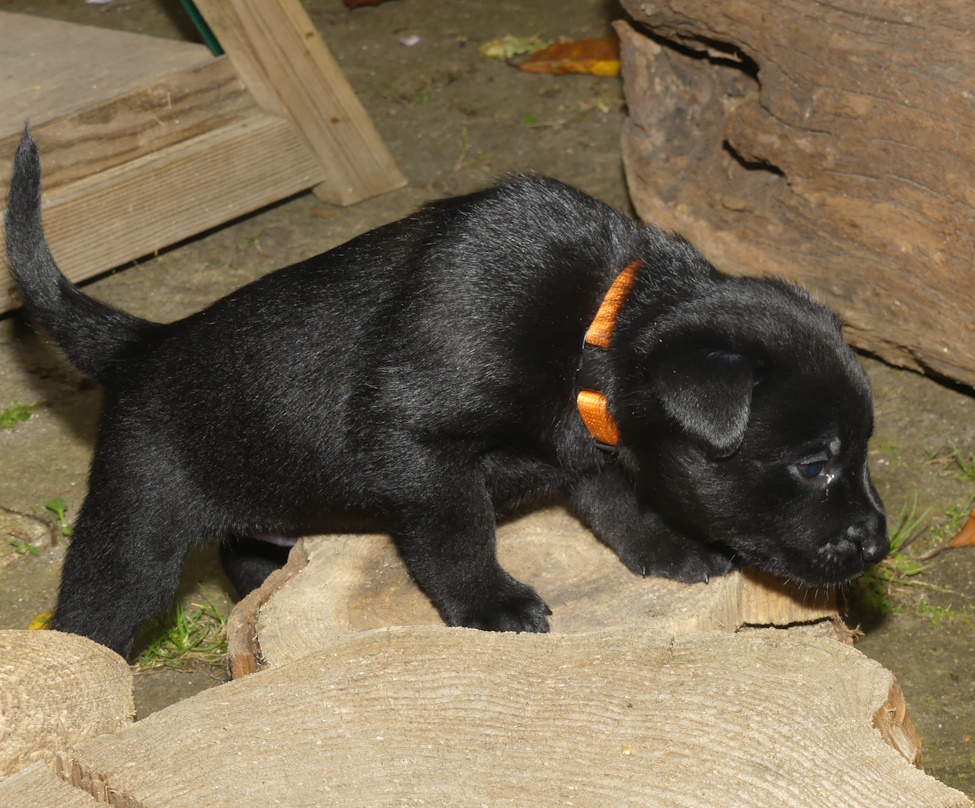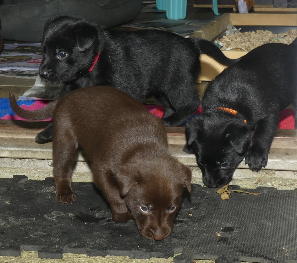 Hvalpene er på opdagelse udenfor og de leger mere med hinanden og de er også blevet mere optaget af legetøj.