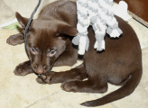 Mezzo er meget venlig mod alle og vil helst sidde på skødet. Han klatrer op på hvem som helst og han klarer det helt selv uden at man behøver hjælpe til😂